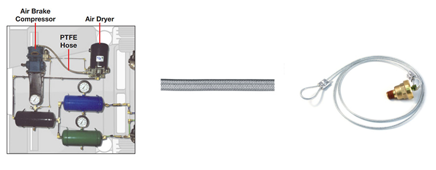 Sistem pemampat terdiri daripada tiga komponen: pemampat, pengering udara, dan hos atau tiub penyambung. Aliran udara yang dihasilkan oleh pemampat tidak boleh digunakan sehingga ia dikondisikan. Terdapat dua masalah dengan udara termampat mentah. Pertama, udara yang datang dari pemampat terlalu panas untuk tiub standard. Hos PTFE digunakan untuk menyambungkan pemampat ke pengering kerana ia boleh mengendalikan suhu sehingga 400 ° F. Hos PTFE boleh dikenalpasti oleh braid keluli tahan karat yang berfungsi sebagai penutup dan tetulang.