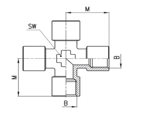 Kelengkapan keluli tahan karat BSPT Union Cross