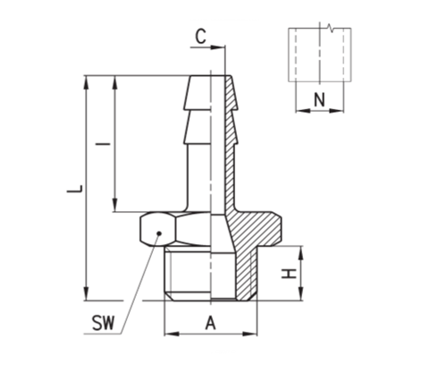 1/2 Thread BSP Adapter Hose Tail tiub 2601