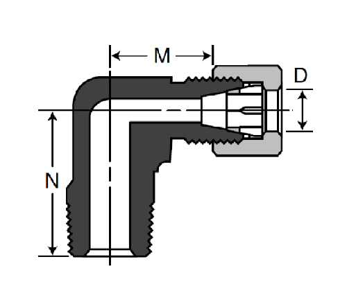 Pemasangan tiub MND69TF adalah pemasangan lelaki yang terdiri daripada salur masuk benang wanita dan siku. Pemasangan ini membolehkan anda menyambungkan pelbagai keping tiub bersama -sama.
